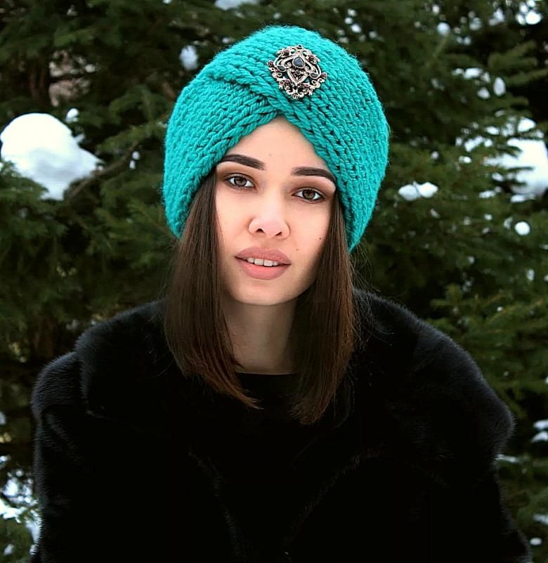 Самият тюрбан е изключително декоративен и изглежда чудесно върху момичета и жени с различни форми на лицето. Но колкото по-добро е качеството на преждата, толкова по-интересен е видът на "тюрбана".