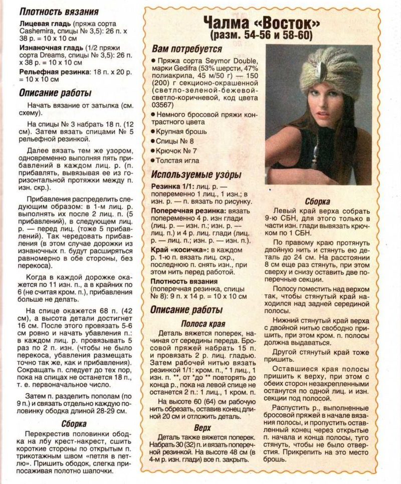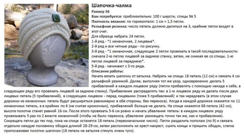 Има няколко описания на шапка "тюрбан", плетена с ножици и на една кука. Всеки вариант има свой собствен чар, някои от тях се изпълняват много просто, а по-сложните - за напреднали любители на бродерията.