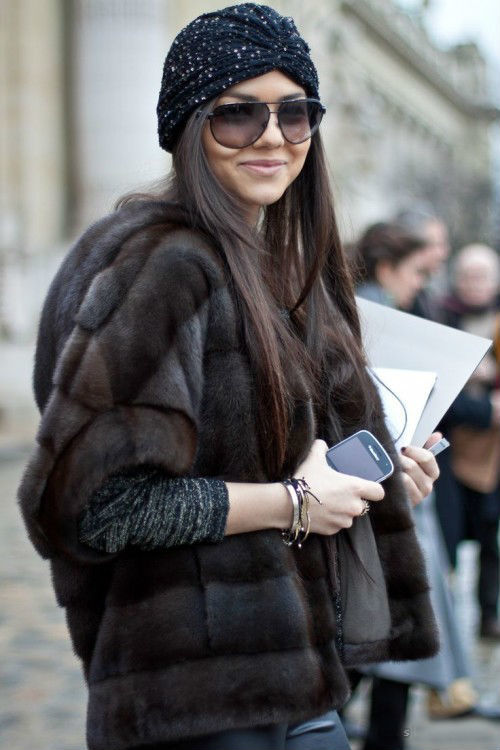Чалмата се съчетава с много зимни варианти, включително дълги пухени якета с кожени яки и просторни жилетки с разкроени подове.