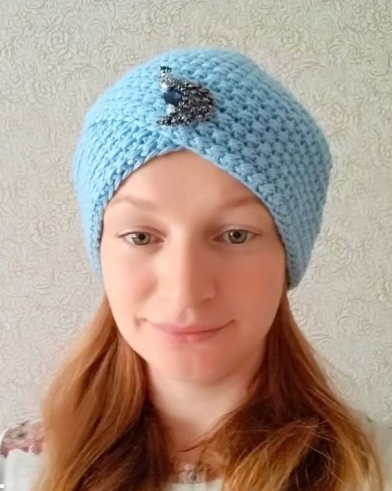 Това е майсторски клас за изработване на оригинален продукт - плетен тюрбан на една кука.