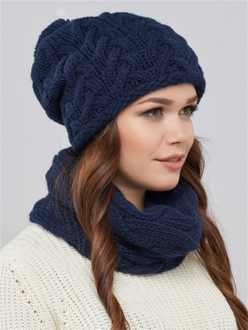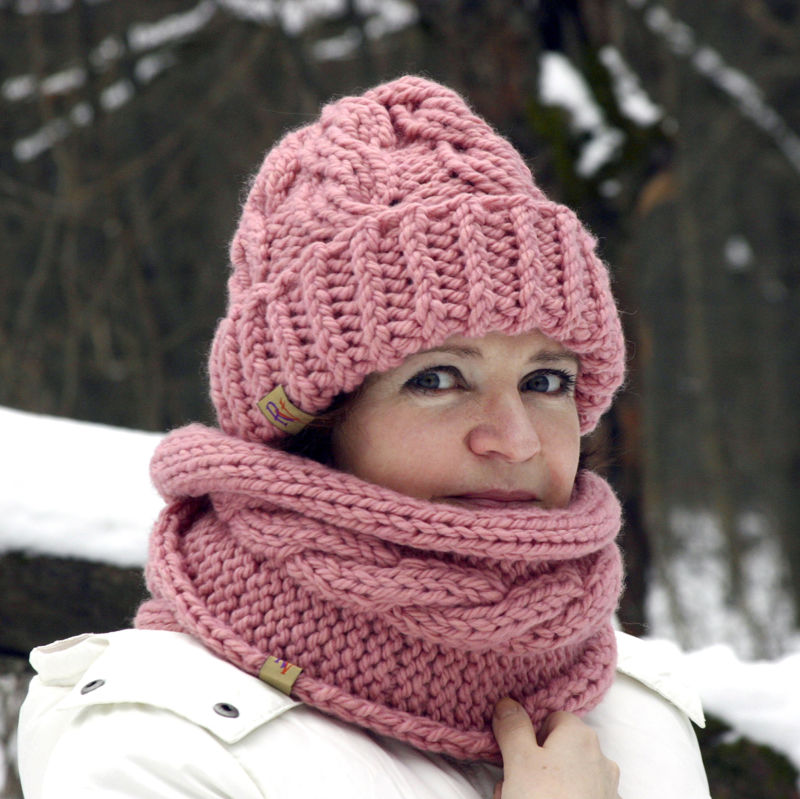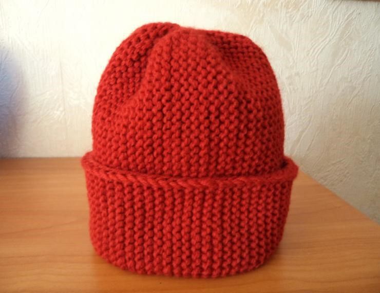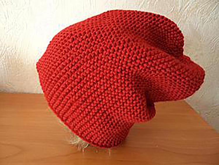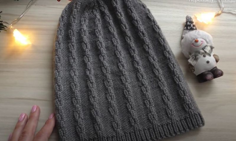 През зимата тази шапка запазва главата ви много топла. Не е препоръчително да плетете модел за плетене под формата на камшик или други издутини с дебела прежда, за да не изглежда главата непропорционална на тялото.