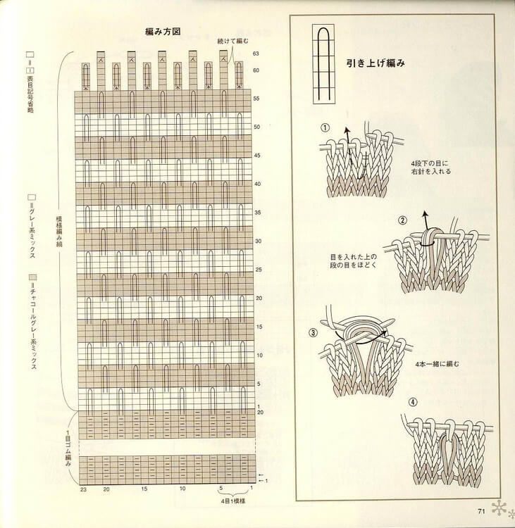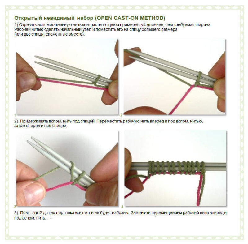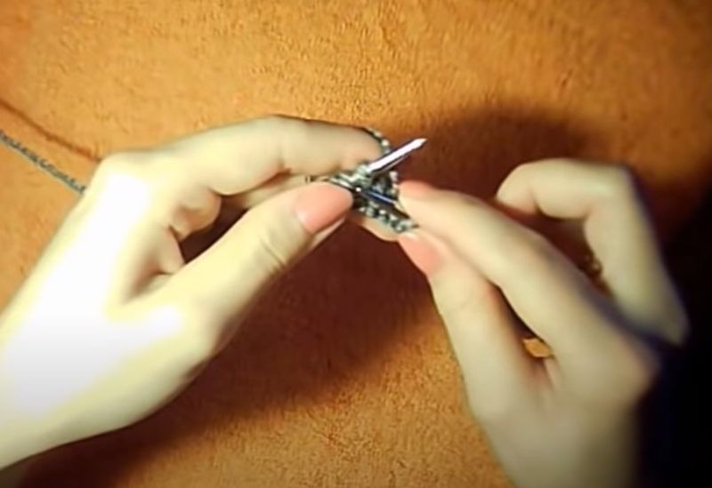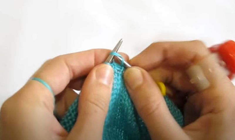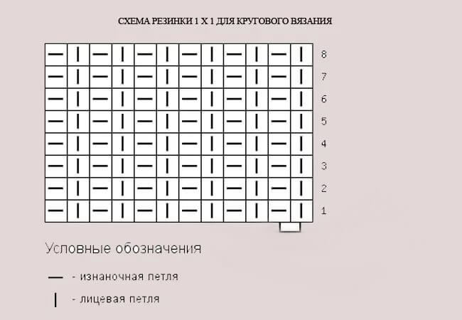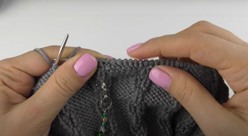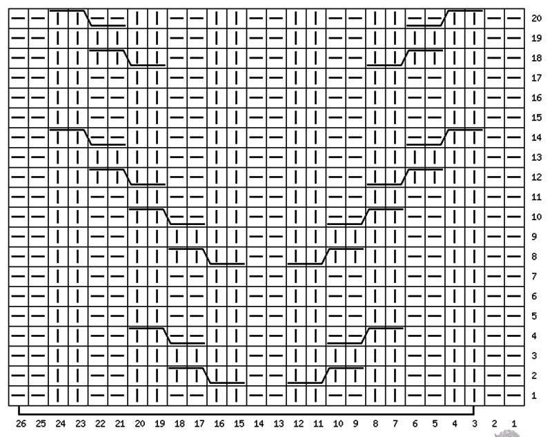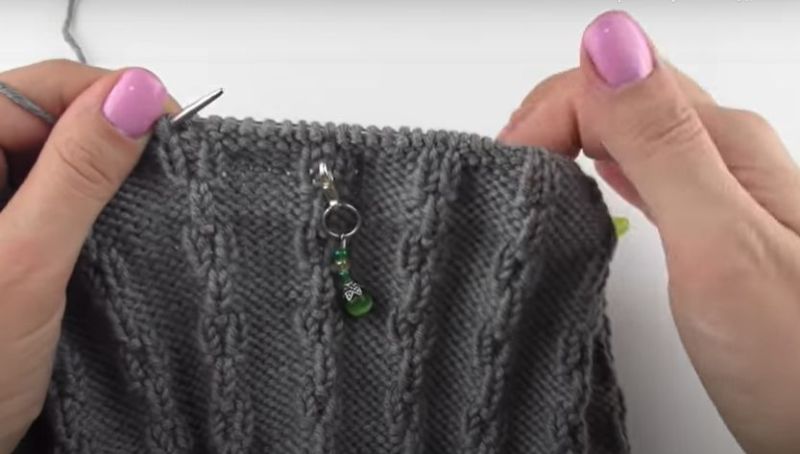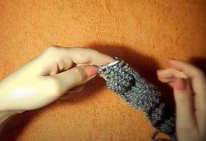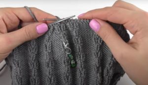 Око, което не е завързано на ред, се увива с конец отзад напред. Моделът е много прост и започва на третия ред.