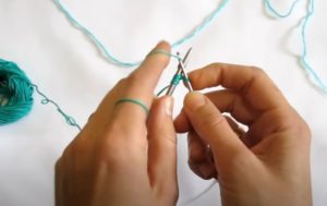 - Наберете 49 цикъла. Това е броят на бримките за височината на шапката. Следователно моделът ще се получи вертикално.