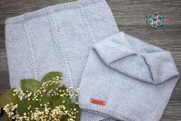 Шалът bini е предназначен за размери на главата 54-56. Бини се плете на шалова плетка, което означава, че всички бримки във всички редове се оставят навън. За плетенето ще са необходими сто грама вълна и акрил.