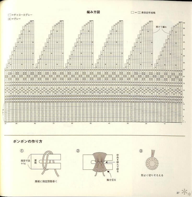 С помощта на този модел можете да плетете шапка бини. Моделът има 18 реда. За продукта е необходимо да се плетат два пасажа, което възлиза на 36 реда. До 44-ия ред ще плетем в съответствие с модела, без да правим дукети.