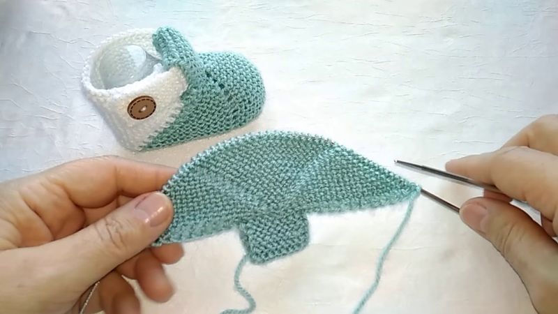 Маншетът на тези ръчно изработени ходила също се плете в напречна посока и се зашива в задната част на обувката.