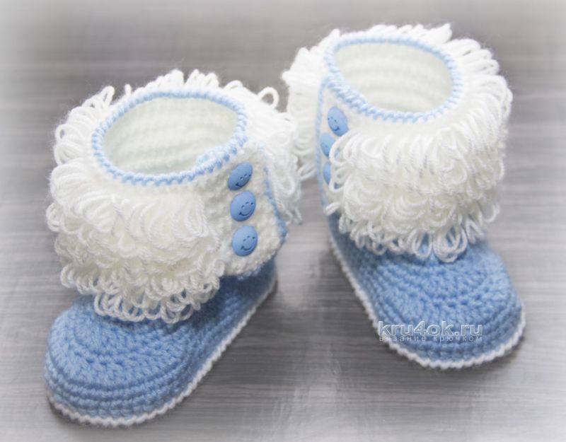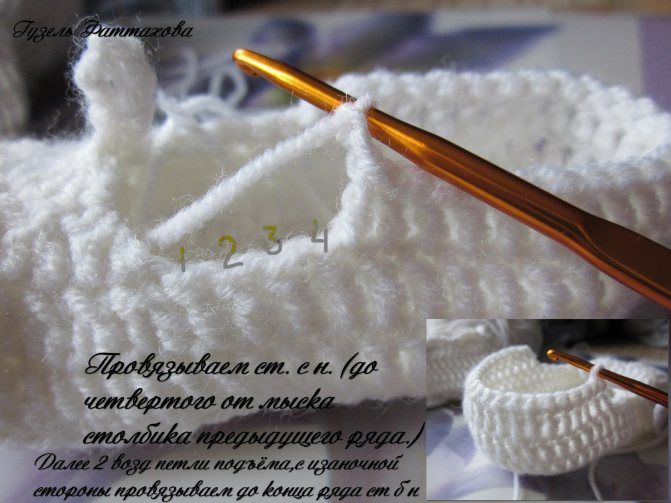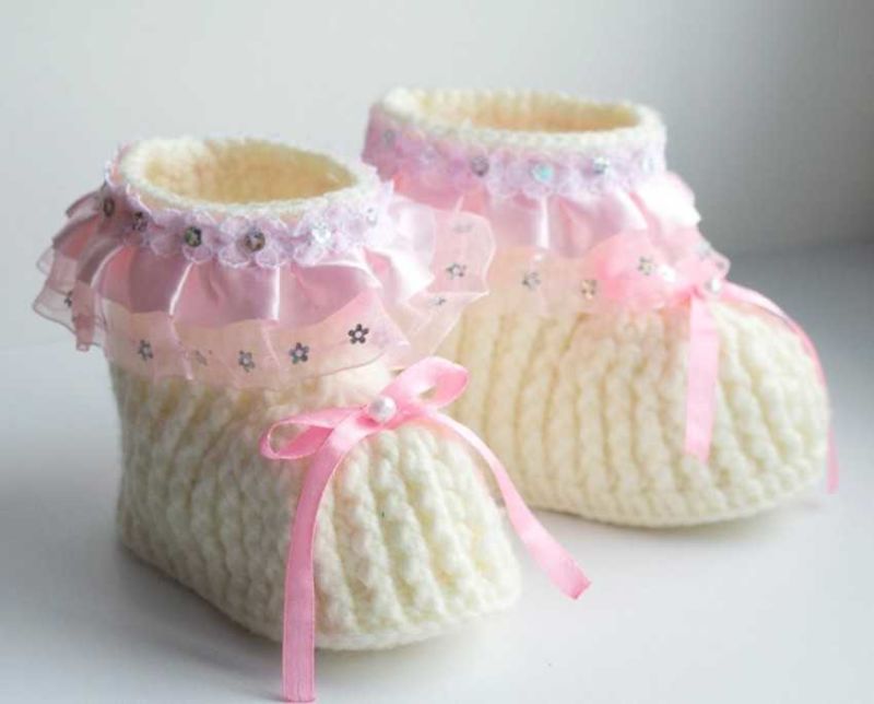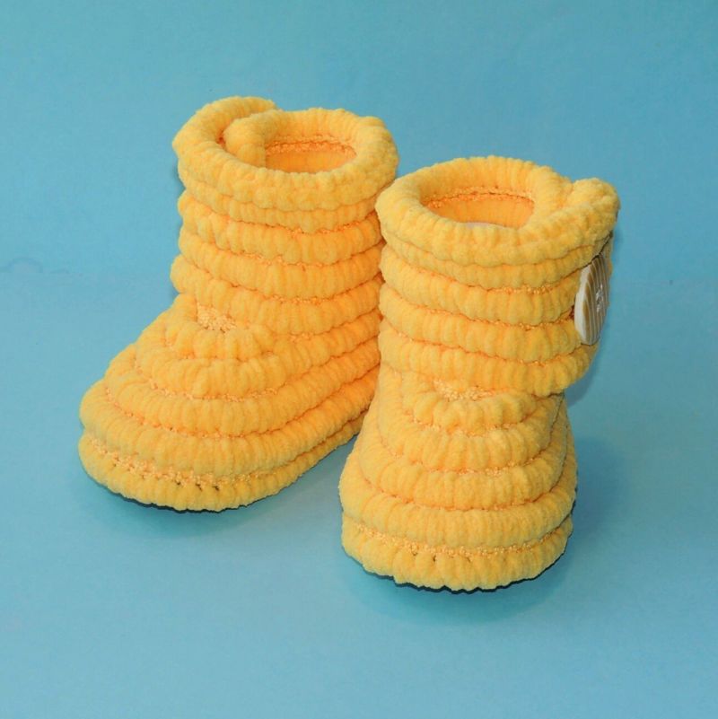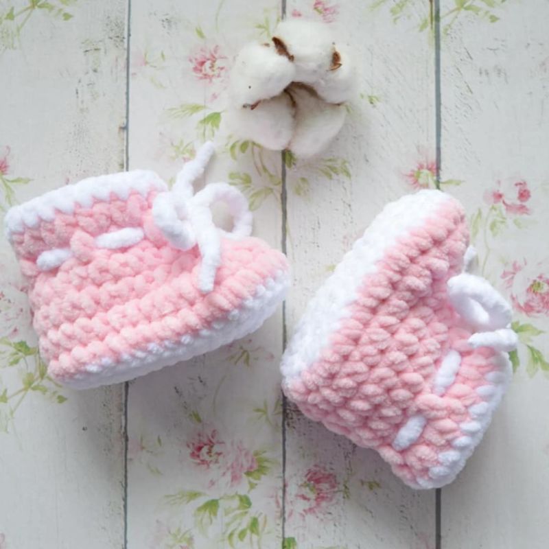 Тъй като стъпалата на бебето са много деликатни и чувствителни, ботушът е за предпочитане да е с пришита основа, изплетена от едно цяло. Ако избраният модел е с подметка от една част с бордюр, шевовете трябва да бъдат направени навън.
