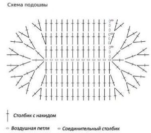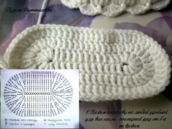 Най-лесният вариант за изработване на чехли с плетене на една кука от прежда започва с подметката: