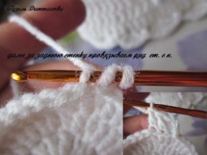 Плетката се прави чрез кръстосване на примките зад и пред основния плат, в зависимост от модела. За целта ще ви е необходим допълнителен инструмент с 2 заострени края.