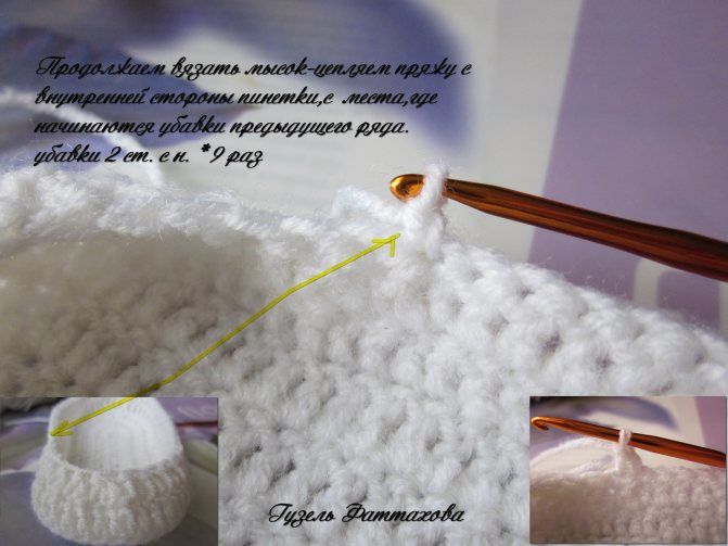 - Чрез постепенно намаляване на шевовете работата се стеснява към върха под формата на ботуш.