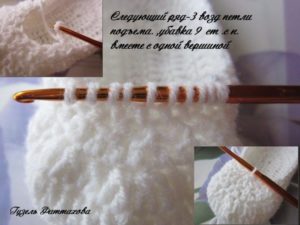 Освен това горната част често е в центъра на вниманието. В такъв случай този елемент се плете релефно или ажурно, като често се използват разноцветни конци.