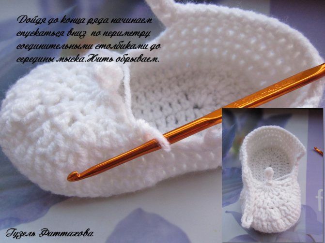 Създаването на пантофи за бебета от прежда е много трудоемка дейност. В края на краищата готовата вещ е много малка, а съставните ѝ части са още по-малки.