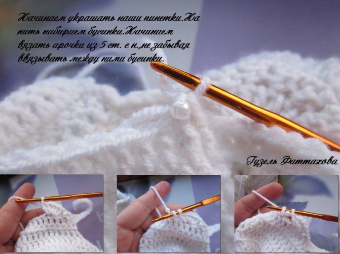 - Декоративността на тези модели се постига чрез украсяване и използване на конци в контрастни цветове. Мъниста, мъниста, декоративни цветя, фигурки, панделки, дантели, помпони са напълно приемливи.