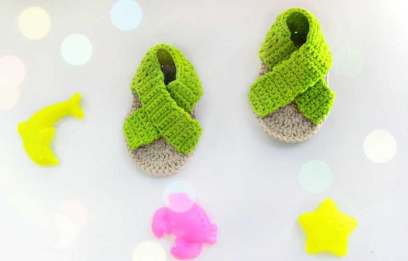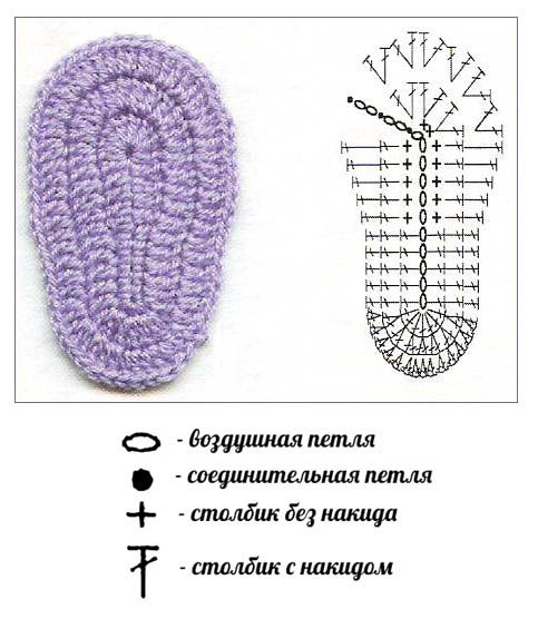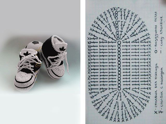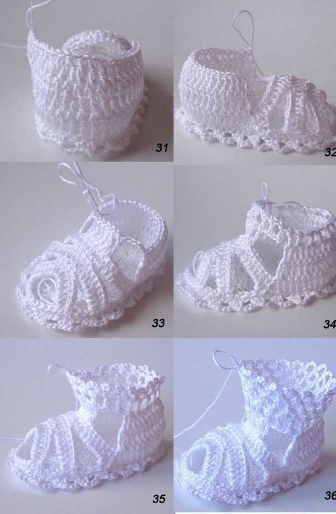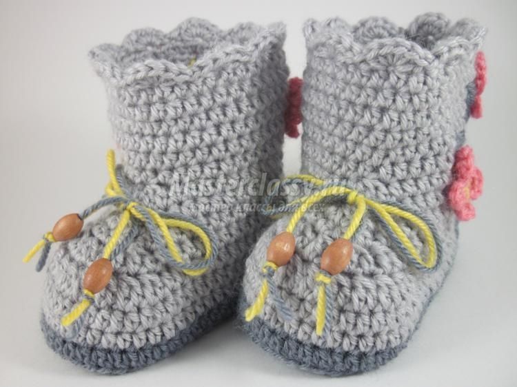 Ботушите се плетат на една кука много по-високо от сандалите. Моделът на пръстите често имитира релефната подметка.