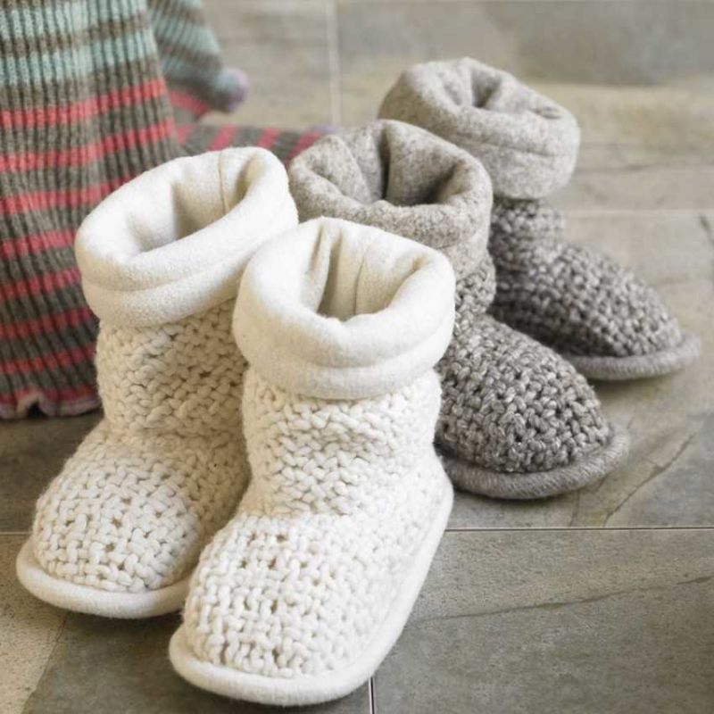 Тъй като тези обувки са много затворени, е добре да ги плетете с дебела, топла прежда: микрофибър, акрил или мериносова вълна.