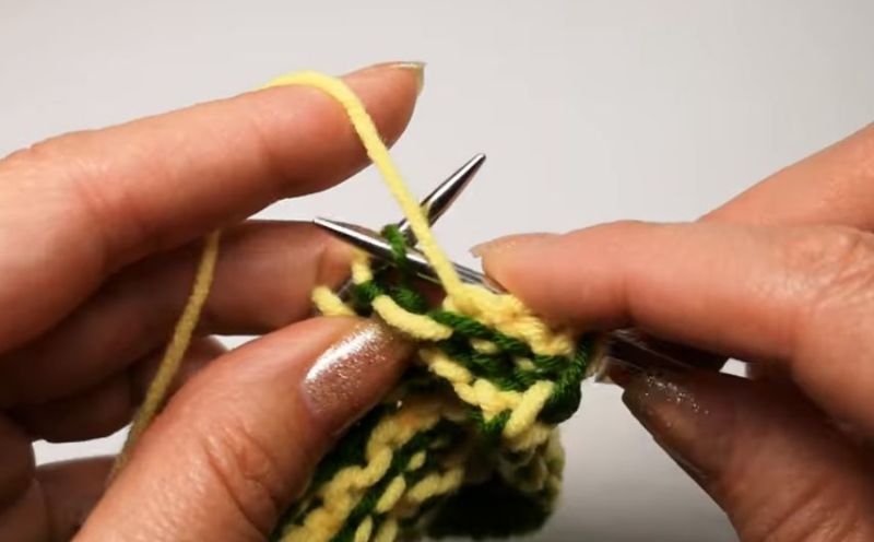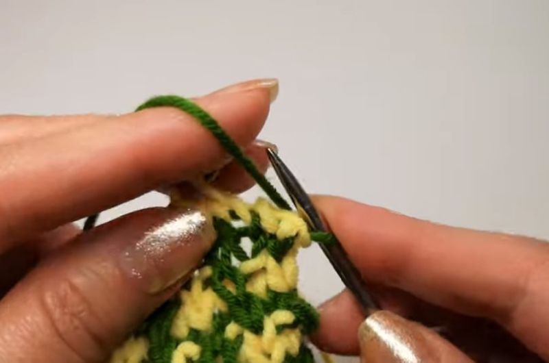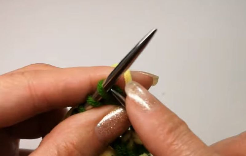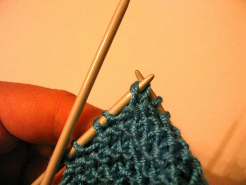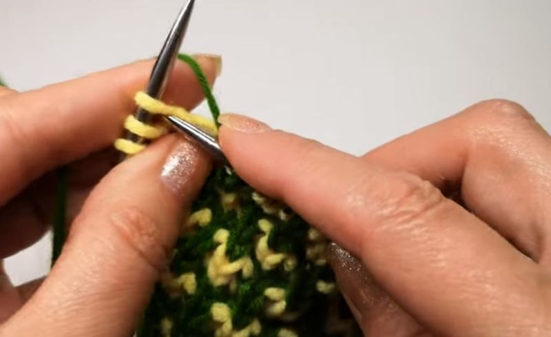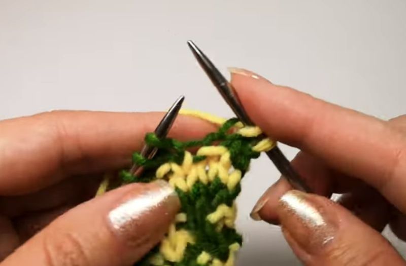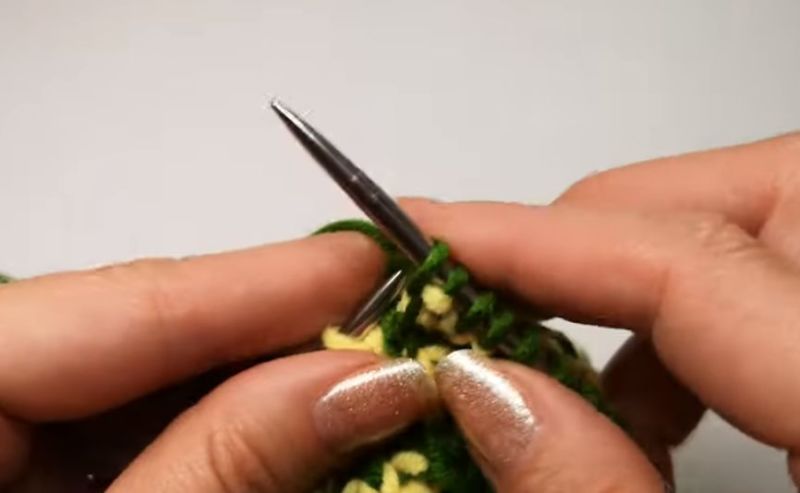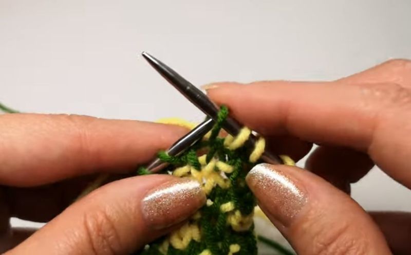След това прехвърлете извадените бримки на иглата и плетете. Те трябва да преминат отляво надясно.