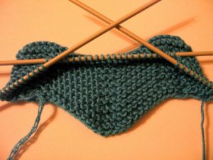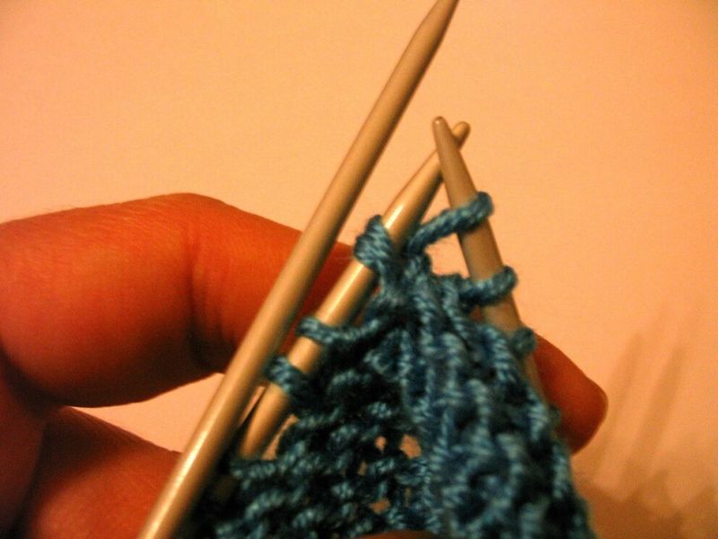 3 ред - 2 игли, 1 лицева, *въртене на 3 игли, 1 лицева* до края на реда.