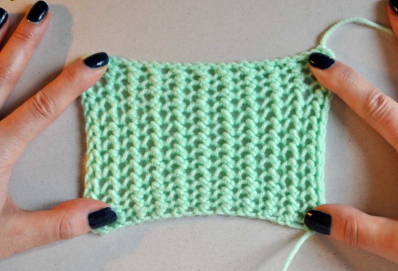 Плътното плетиво от двете страни изглежда еднакво - откъм грешната страна на бримката. Това е основа, върху която могат да се покажат изпъкнали модели и трасета.