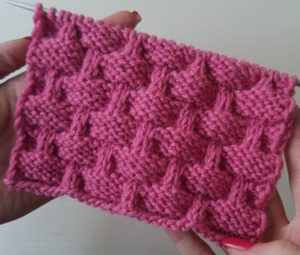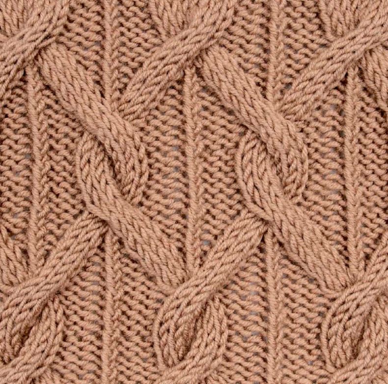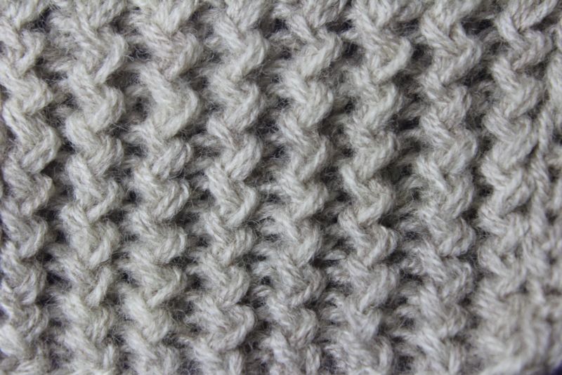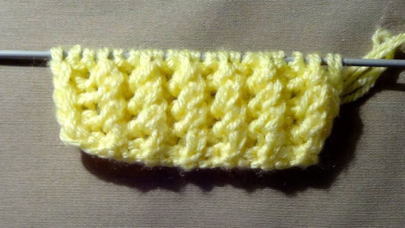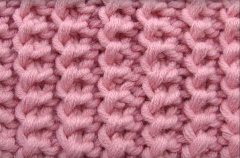 Методът на изпълнение е съвсем прост. Рапорт - 4 бримки, повтаряме 4 реда. На първия ред се редуват предната и задната бримка. След това над лицето се поставят предните примки, а задните примки се свалят с панта.