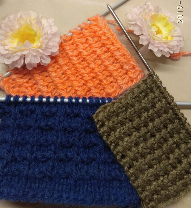 Шевовете се връзват, както е описано в описанието на модела, за да се получи обемна, плътна плетка. Добре изглеждащите варианти са тези, при които работният конец е издърпан зад шева или пред шева, който се шие.