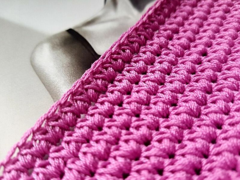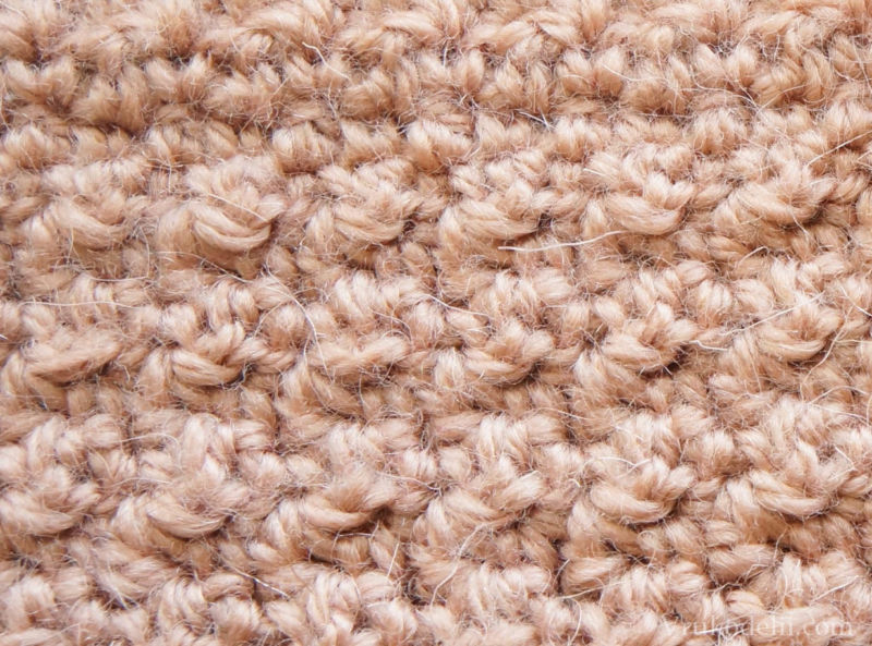 Моля, обърнете внимание! Ако куката се вмъкне само под едната страна на бримката и след това в обратния ред премине през другата страна на V-образния връх на реда, се получава плетен плат.