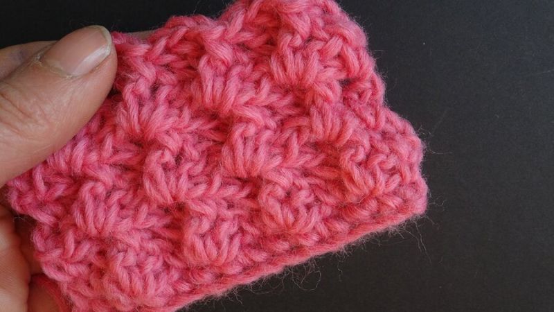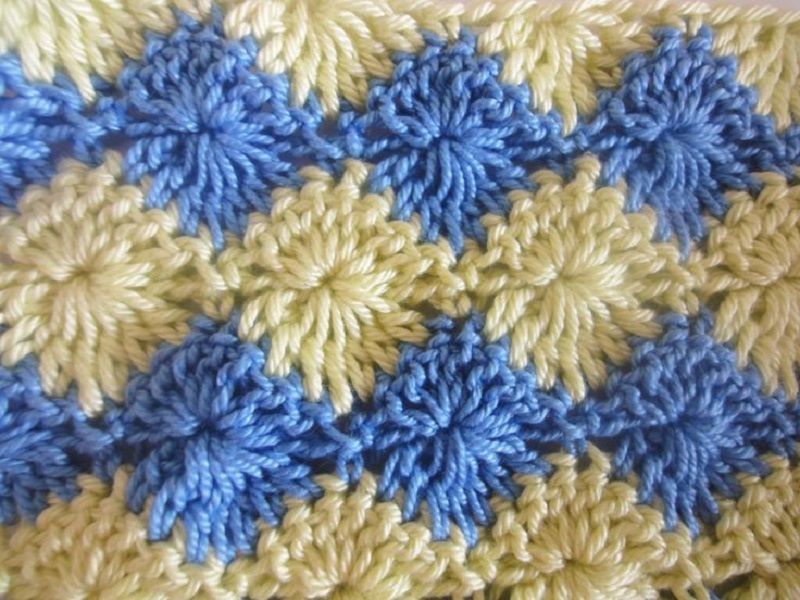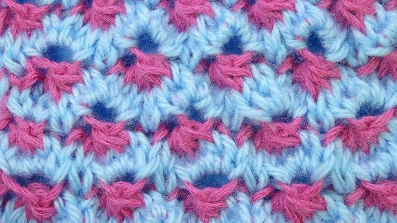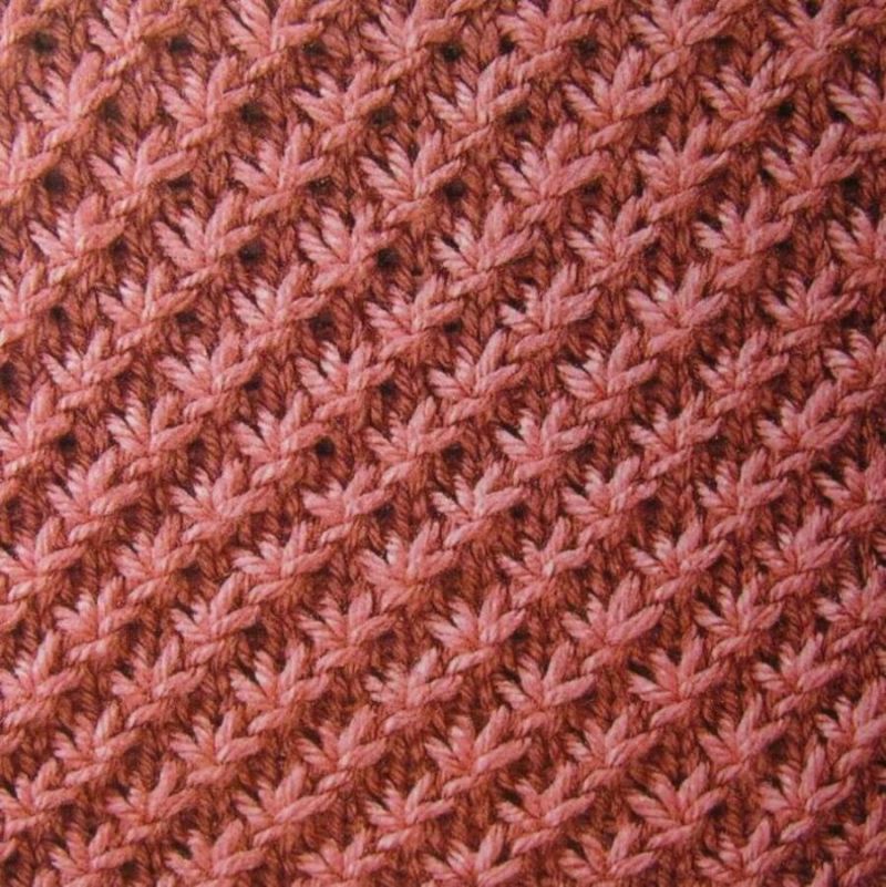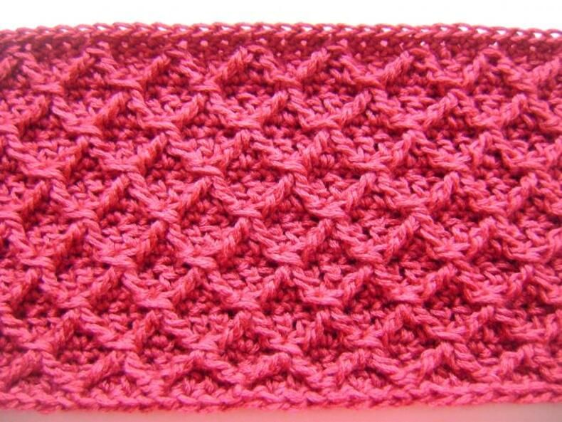 В чуждестранните списания за плетене този дебел модел има много различни имена, включително "starburst" и "cornrow". Изглежда чудесно върху топли предмети във всеки цвят. Моделът на звездичката работи добре както с преден, така и с обратен бод.