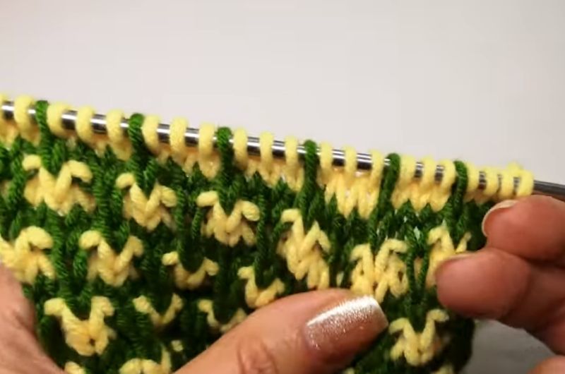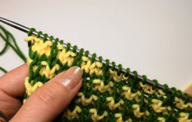Редуването на колони с един и два шева е съкровищница от модели за изработване на текущи модели. Начинът, по който е направен моделът, се различава по захвата на колоната на долния ред.
