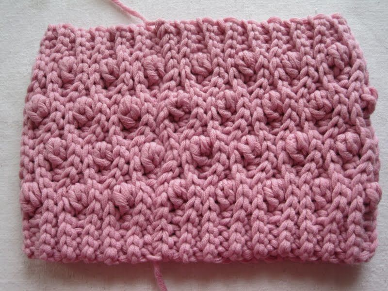 Върху предните редове се плете по схемата. От грешната страна - предните шевове с уловка от долния ред, грешните шевове - както обикновено. Моделът трябва да прилича на ластик с "кръгчета", наречени "перли".