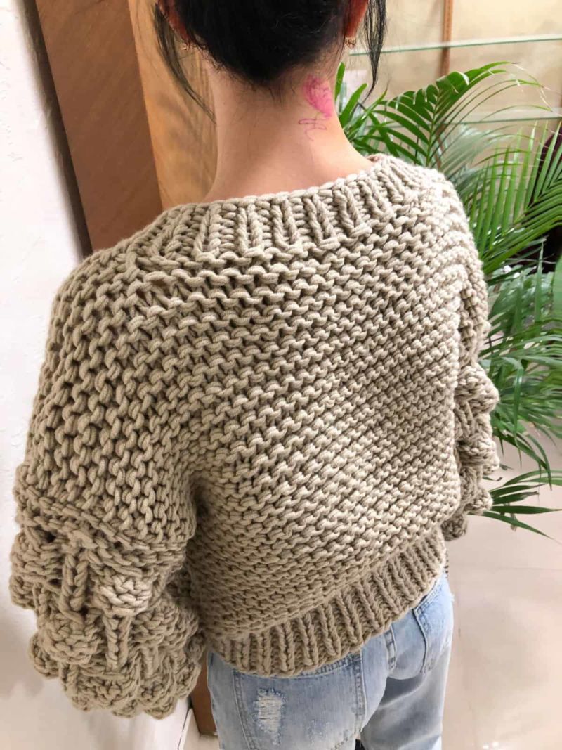 - Модерна тежка плетка с този модел за плетене на една кука.