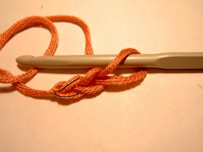 - И така, сглобете преждата. Затегнете първия бод, като държите краищата на конците.