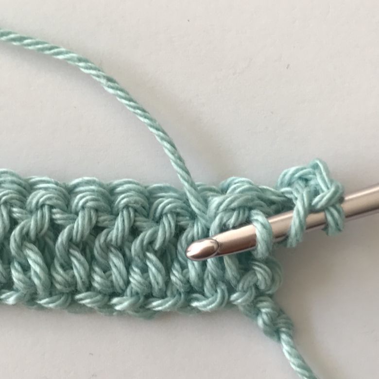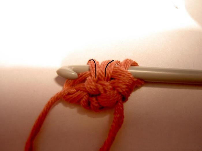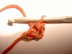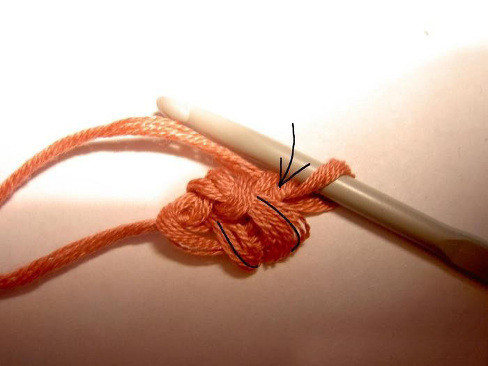 И така, изплетете на една кука три бримки и веднага махнете последните две бримки. Сега издърпайте конеца през шева. Намерете първия премахнат бод и прокарайте конеца през него.