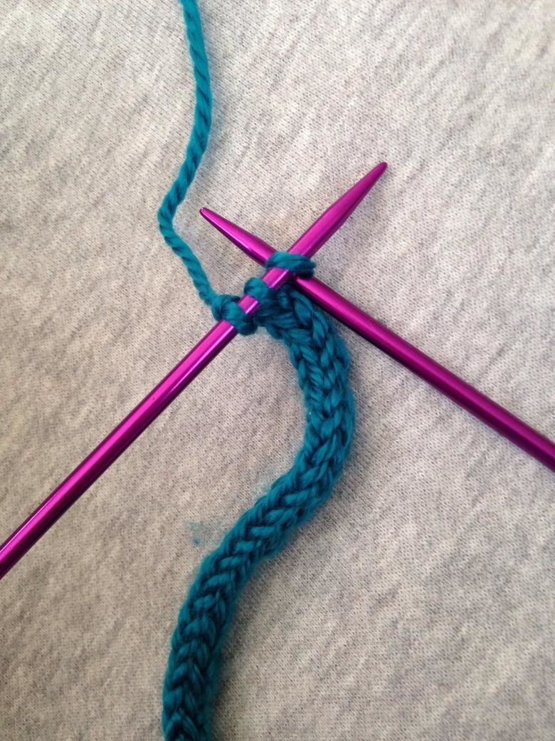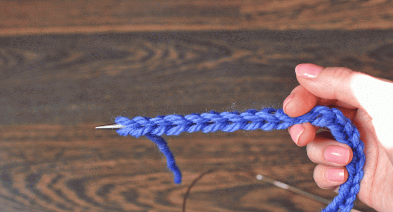 - Сега вземете само един конец, плетете само с него, а втория оставете в задната част на работата. Издърпайте преждата през бримката, за да направите още една бримка.
