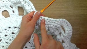 - Използване на въздушни контури. За целта направете верига от обикновени въздушни примки с подходящ размер. Въжето е тънко, но дори и такъв елемент може да бъде полезен в творението ти. Ако обикновените примки не са ви достатъчни, техниката може да бъде малко по-сложна: към вече направената верига завържете ред свързващи колонки.
