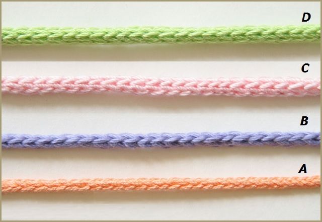 Този вид корда се плете на два реда. Нека ги разгледаме по-подробно: