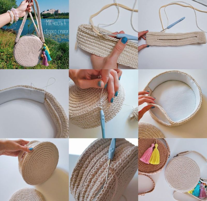 - Не забравяйте да маркирате мястото на дръжките и другите аксесоари, за да не ги изгубите. На 27-ия ред правим съединителни бримки. В края на парата на продукта, прикрепете аксесоари. Готово!