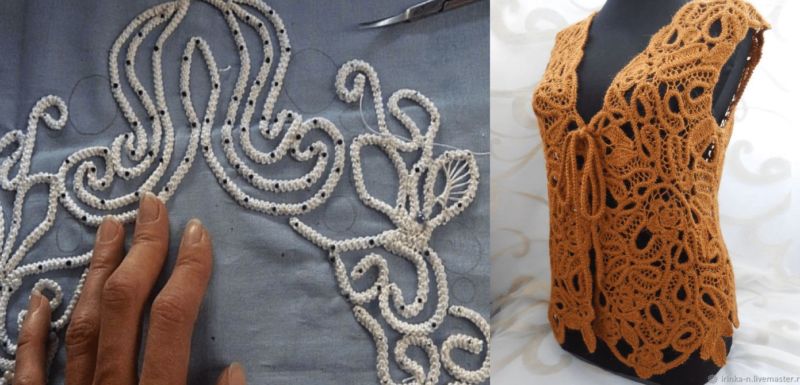 - Със списание. Тази техника също е изключително проста и опитната майсторка ще може да се справи с нея буквално със затворени очи. За да се създаде ажур, колоните се добавят към обикновена верига.