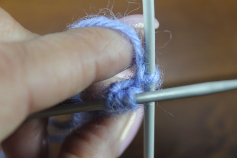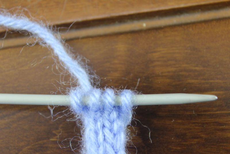 - На два бода. Всяка прежда и игли за плетене на чорапи са подходящи. Вземете две бримки, махнете първата бримка и изплетете втората в неправилната посока.