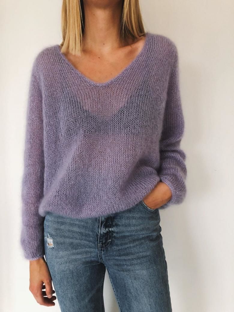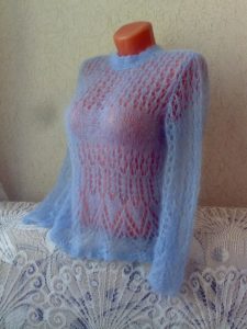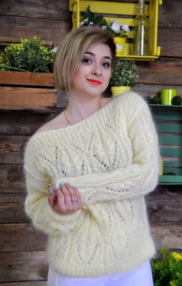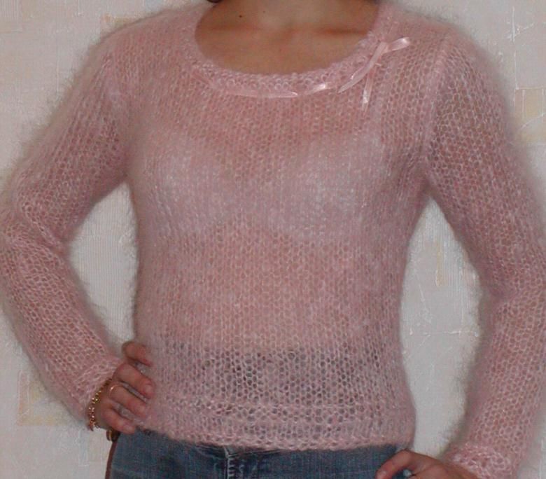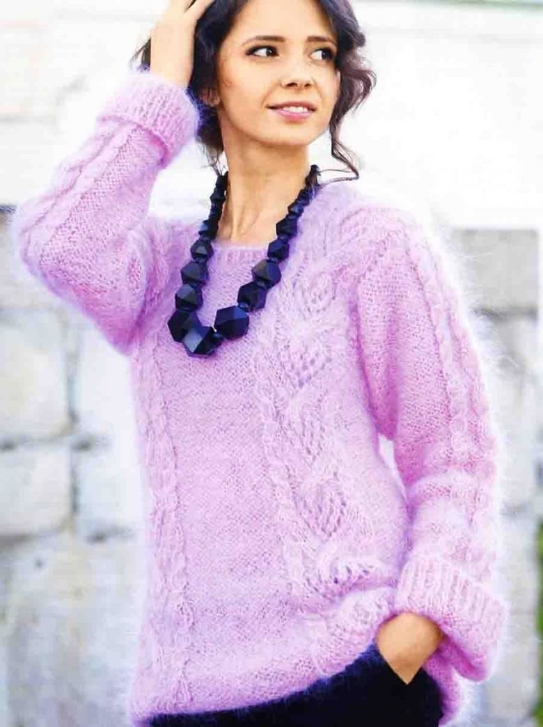 Той ще свърши чудесна работа през прохладните летни вечери. Мекият и пухкав мохер не се отличава с бодливостта на традиционната вълна. Можете да плетете такъв пуловер по много различни начини. Съответни модели: