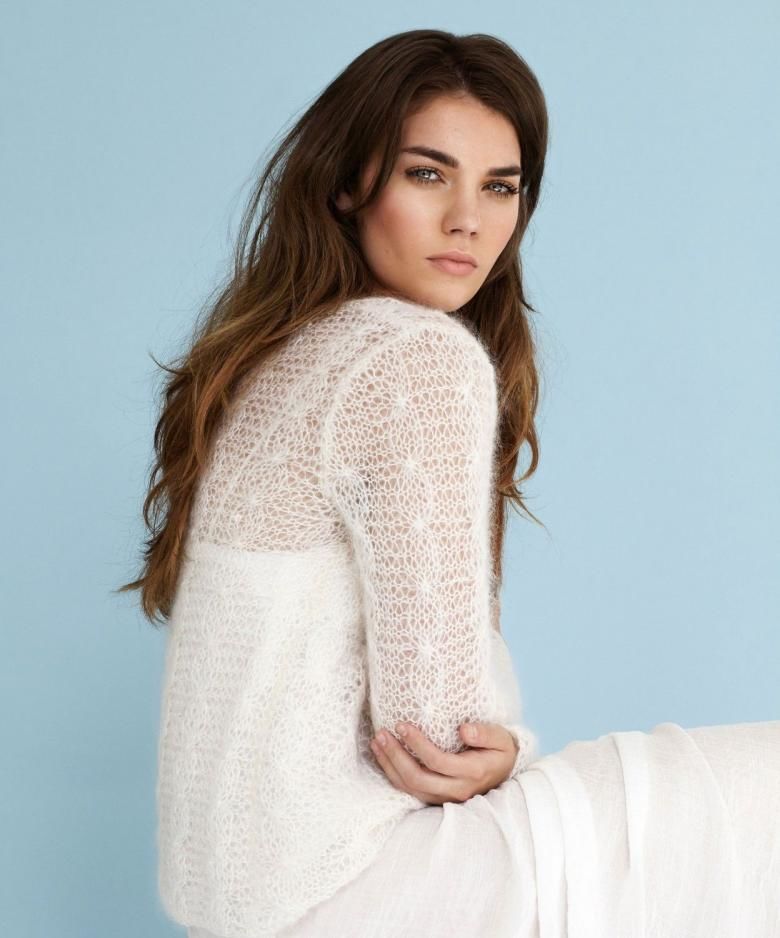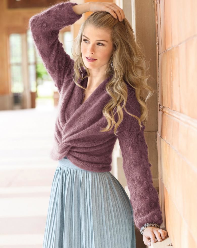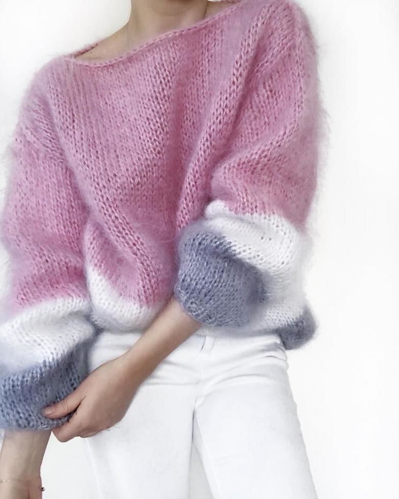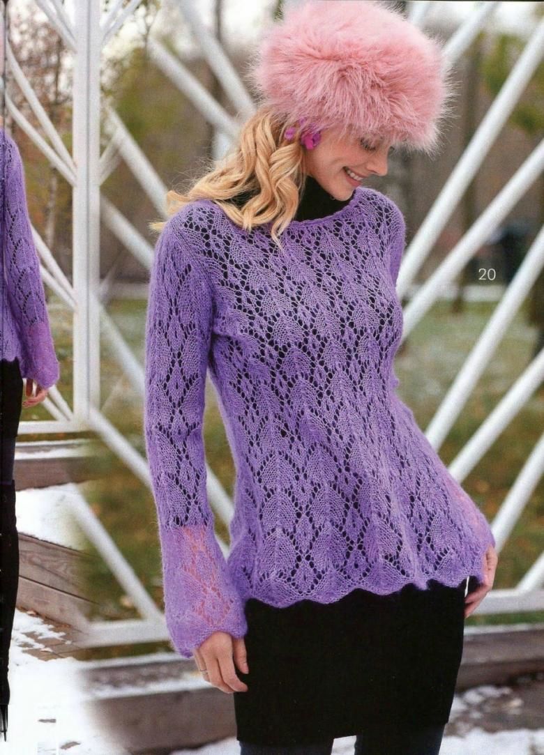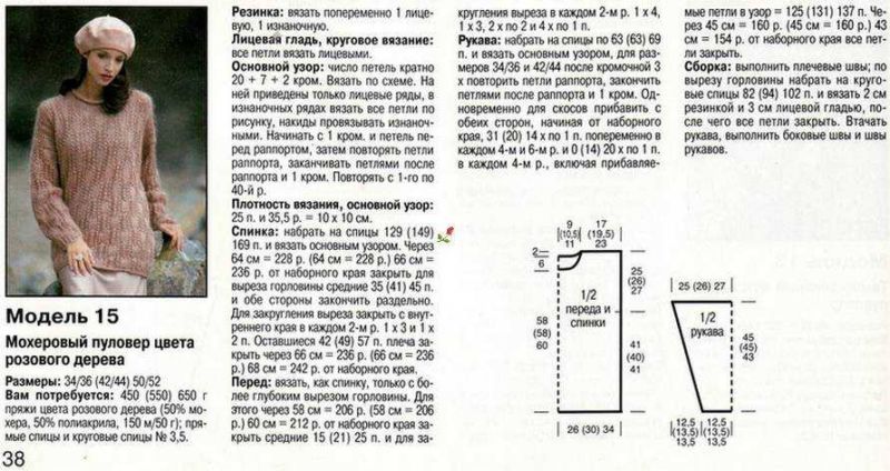 Той ще свърши чудесна работа през прохладните летни вечери. Мекият и пухкав мохер не се отличава с бодливостта на традиционната вълна. Можете да плетете такъв пуловер по много различни начини. Съответни модели: