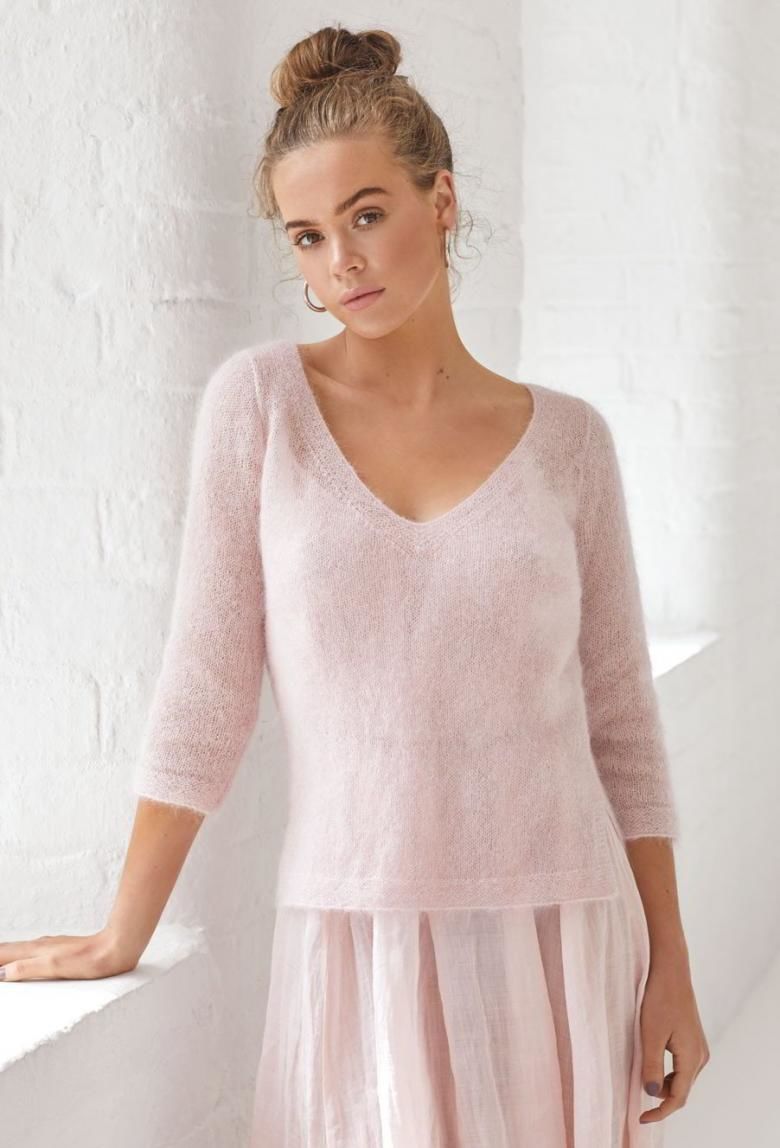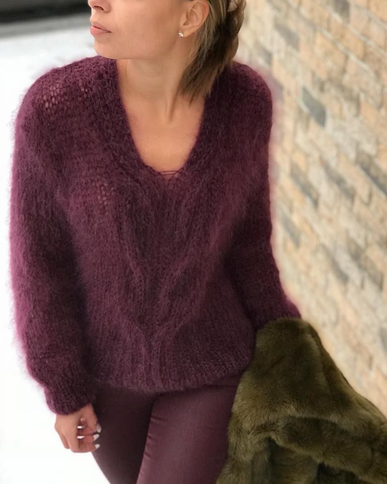 Деколтето е лесно и интересно за носене. Плетенето на мохерен пуловер се извършва най-добре, като се знае как да се работи върху изделието.