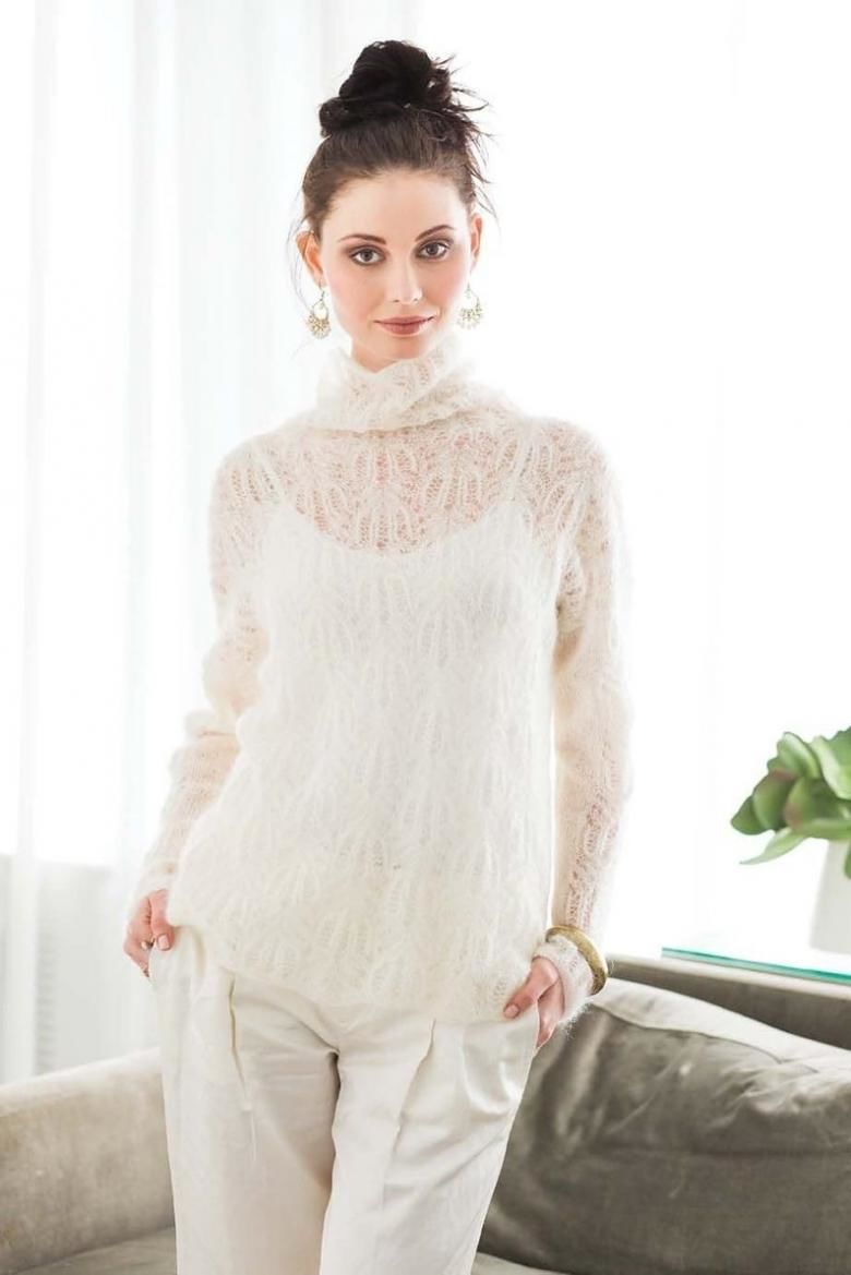 Популярен елемент от гардероба е пуловер с яка. Завържете такъв продукт от мохер, за да получите изненадващо елегантно нещо. Такъв лек пуловер може да се използва не само през зимата.