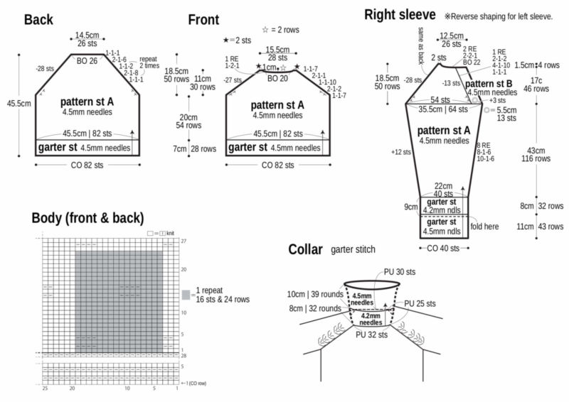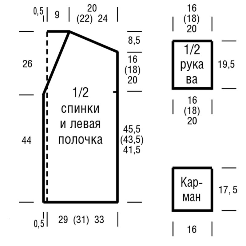 Ако желаете, горната част може да се пригоди. В този случай изчислението ще трябва да се направи по-подробно, а в работата да се използват събиранията и изважданията, които начинаещите без схема или подробно обяснение трудно разбират. За основа можете да вземете яке от мохер с описание.