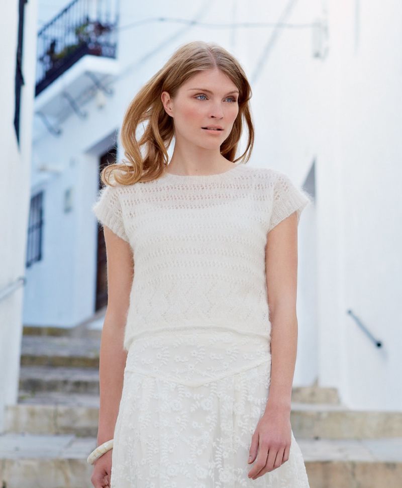 Светлана, благодаря ви за интересния комплект. Много се интересувам от белия пуловер № 49 със скъсени ръкави. Можете ли да коментирате модела? Благодаря ви.