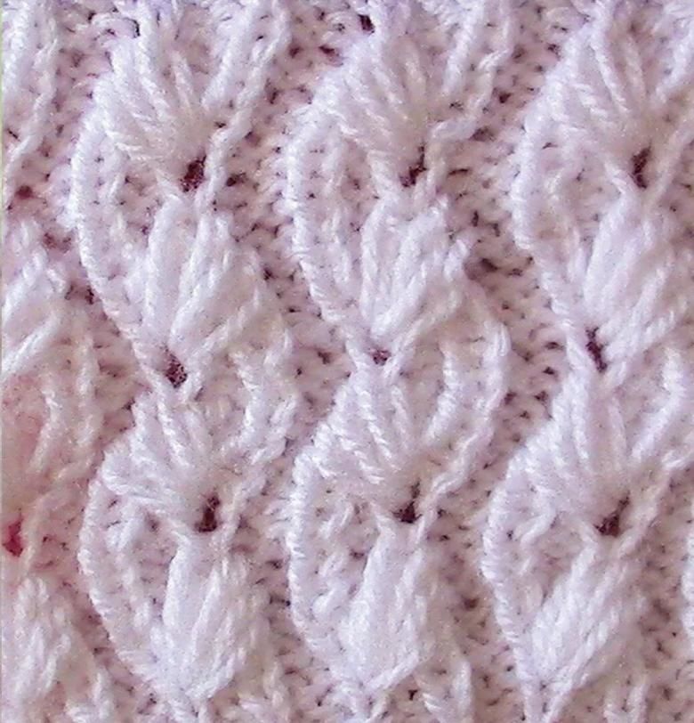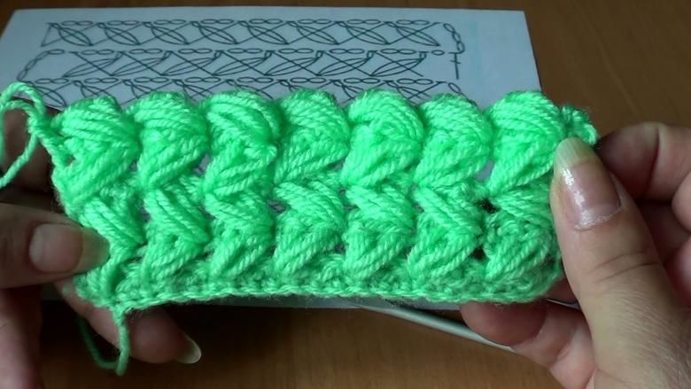 - 2-ри ред: изплетете 14-18 капачки (зависи от дебелината на преждата), след това ги увийте в примка, разгънете панела, така че в същия ред да държите модела "черупка": изпълнете 1 ПДЧ, след него 1 ПДЧ, 12-18 ПДЧ, след това 1 ПДЧ и 1 ПДЧ. Останалата част от редицата плетете С-ШН.