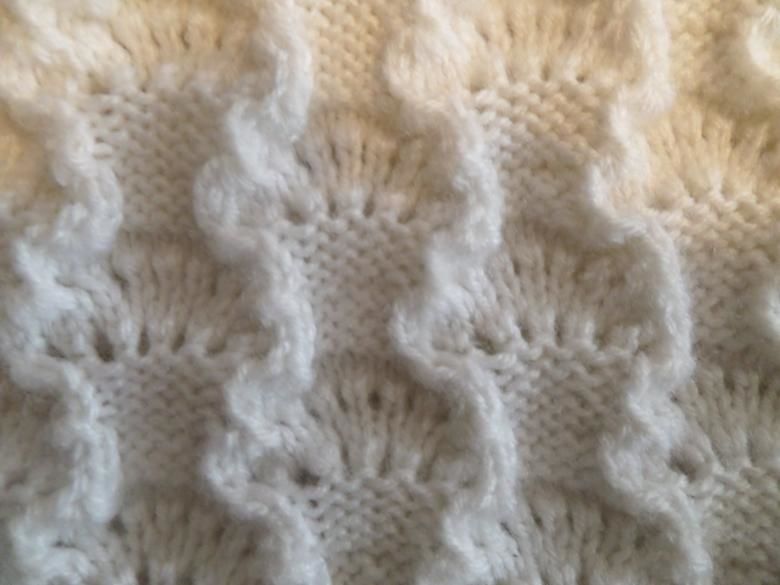 - Ред 7: повтаряме - 2 № 3 бода, след това кръстосани 6 бода от всяка страна на 3 бода. За кръстосания бод отстранете първите 3 бода от допълнителния бод и ги оставете в началото на работата, след това оставете 3 бода от левия бод, прехвърлете първите 3 бода върху левия бод и ги изплетете с прав бод).