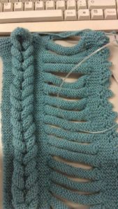 - Изплетете един ред бримки преди началото на модела на плитка.