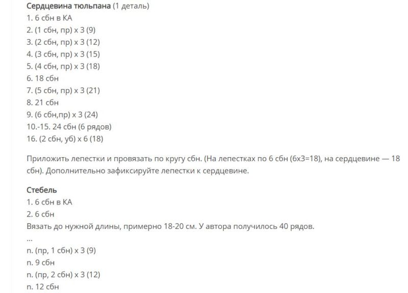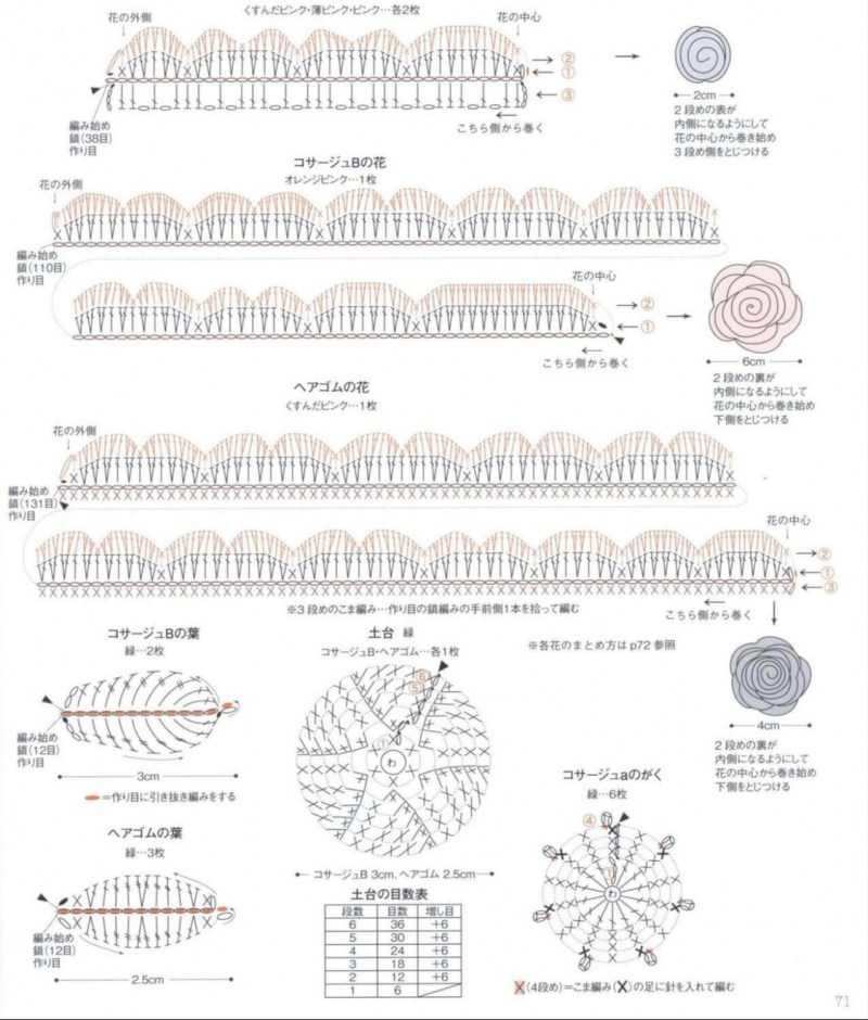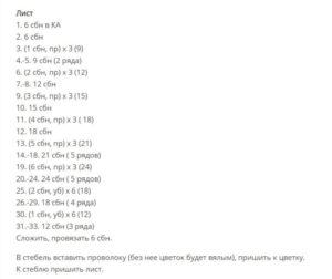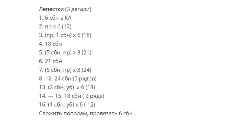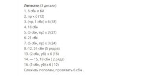 Тук всяка част от модела показва броя на бримките, които се включват в дължината на всяко венчелистче. Този размер обаче е само ориентировъчен - всичко зависи от това колко голямо е необходимо цветето и колко дебела е преждата.
