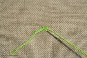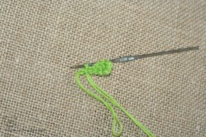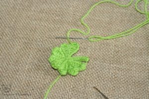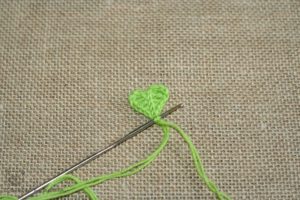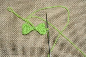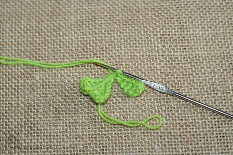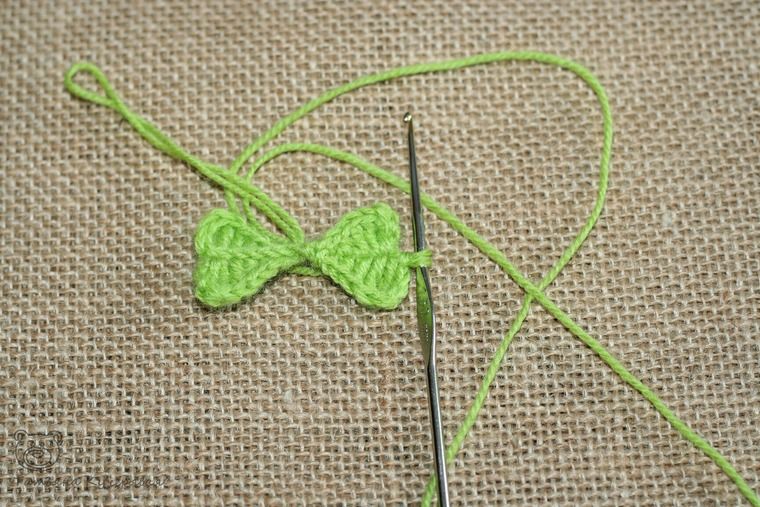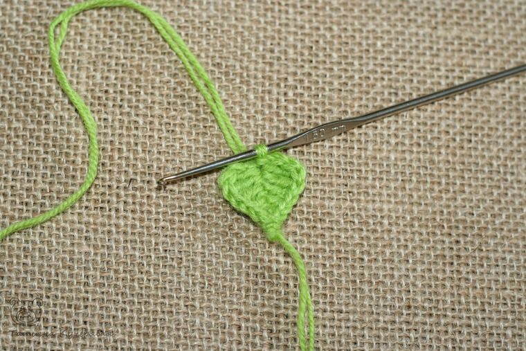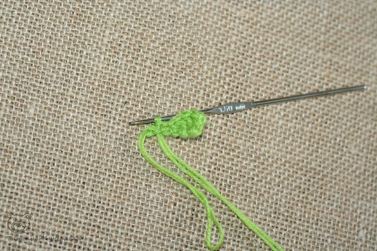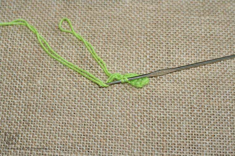 - Наберете малък брой примки в зелено - това е купата. Изплетете 2-3 реда, като постепенно увеличавате броя на бримките, за да оформите дъга.