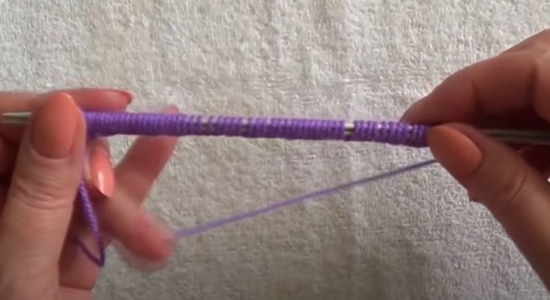 За да направите хубава обемна плетка, трябва да наберете 7 бримки и да ги изплетете на първия ред от лицевата страна. След това: