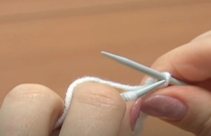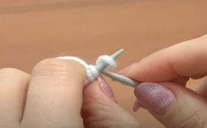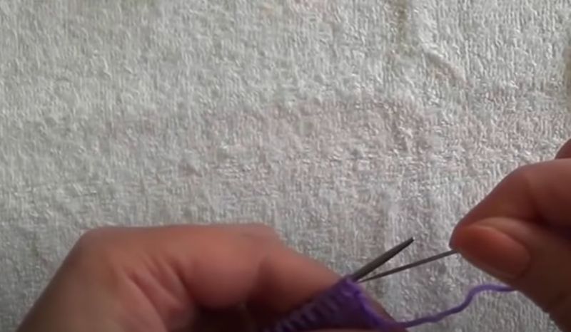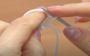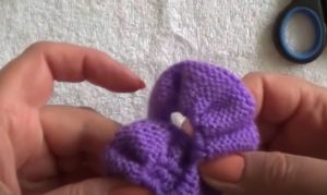 - Вземете друга нишка и изплетете 4 бримки. Изплетете петата бримка в средата на предишната бримка. Изплетете същия брой бримки. Създайте 2 кръстосани елемента.